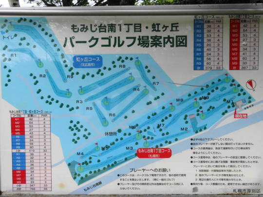 もみじ台緑地南1丁目パークゴルフコース【北海道札幌市】 北広島市の虹ヶ丘パークゴルフコースと札幌市厚別区の市境をまたいで隣接する2コース ▶大きな地図で見る シュンパゴさんのブログで当コースを詳しく解説中! 【注意】掲載されているコース情報は最新ではない場合があります。ご利用の前にコースにご確認ください。 パークゴルフ場名: もみじ台緑地南1丁目パークゴルフコース 住所: 北海道札幌市厚別区もみじ台南1丁目 電話番号: 011-897-7805 ホール数: 9 距離総延長: 400m 駐車場: 駐車場有り 利用料金: 無料 開設期間: 4月〜11月 冬期間クローズ 詳しくはPG場まで 営業時間: 7時〜日没(木・土曜日は整備のため17時まで) 定休日: 火曜日 レンタル: なし コメントを残す コメントをキャンセルメールアドレスが公開されることはありません。 ※ が付いている欄は必須項目です 名前* メール* サイト 次回のコメントで使用するためブラウザーに自分の名前、メールアドレス、サイトを保存する。